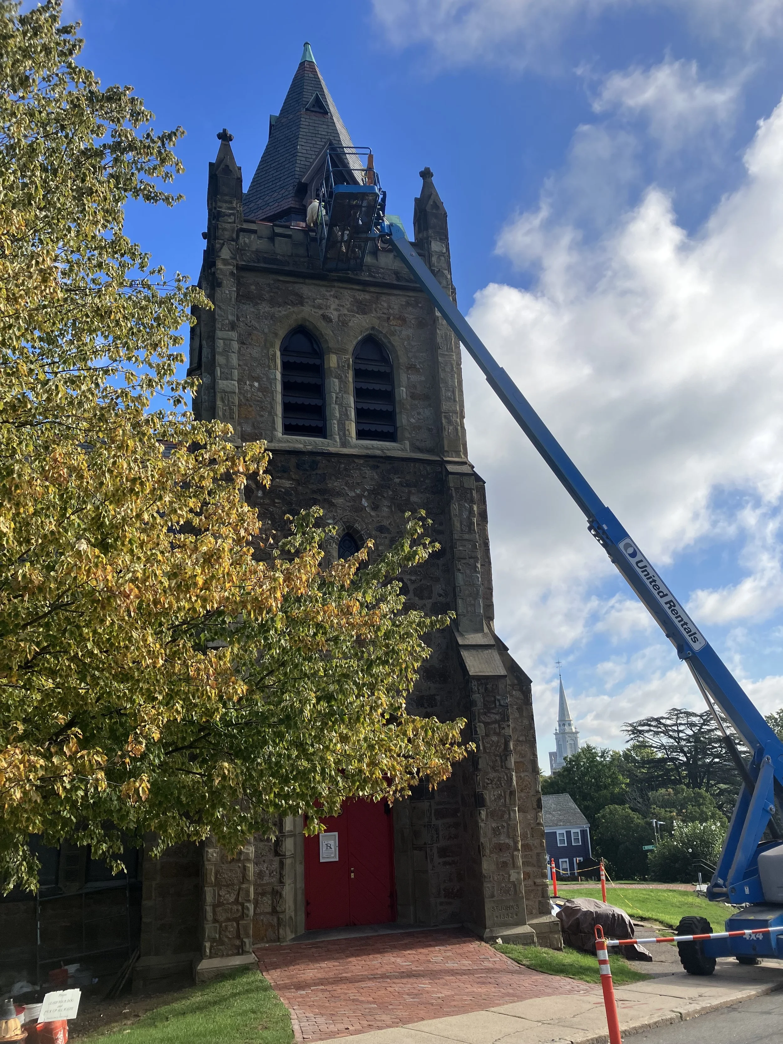 We have nearly completed our most urgent priority - repairing leaks in the tower and spire, and making repairs to a portion of the southern (Roanoke Street) wall and window opening for the Proctor Memorial window.